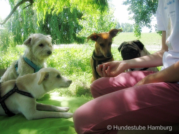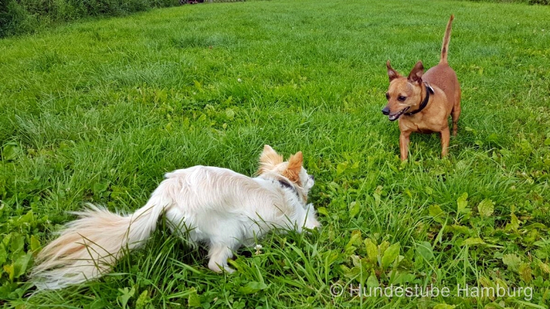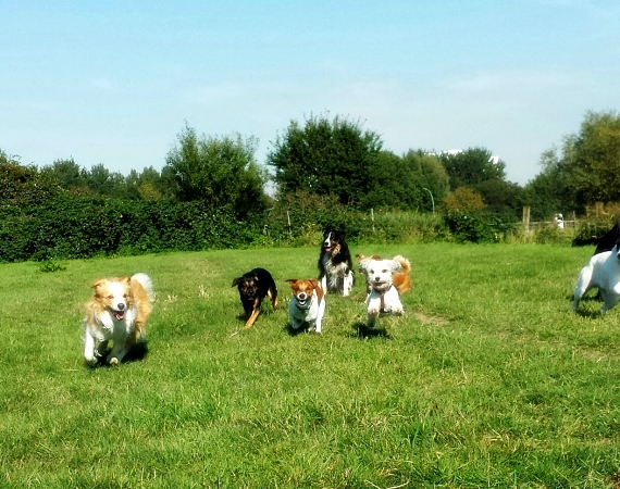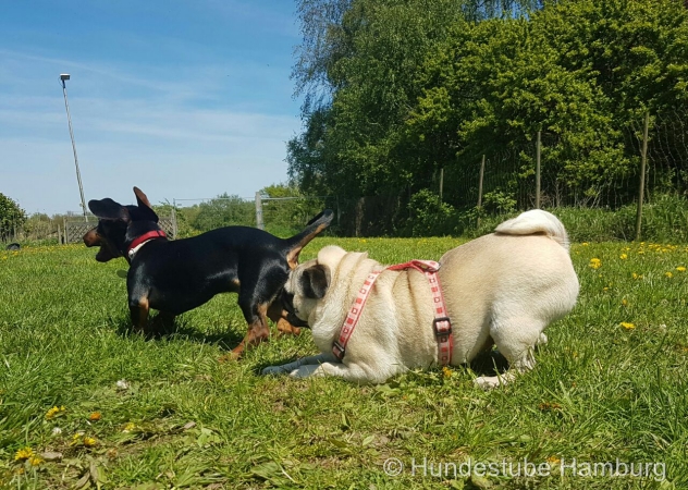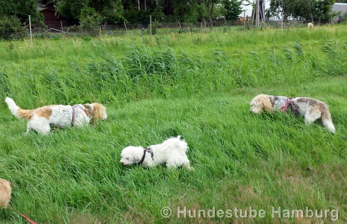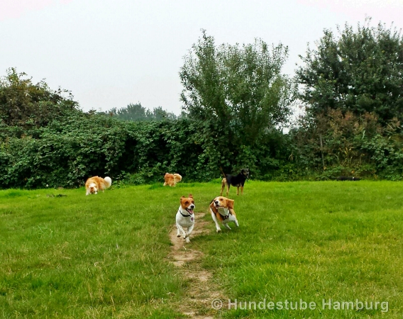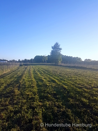 Wir haben einen ganz eigenen Auslauf, schön versteckt in ca. 10km Entfernung vor den Toren Hamburgs - dort können die Hunde ungestört nach Herzenslust toben, spielen, chillen, buddeln und einfach "Hund" sein.
